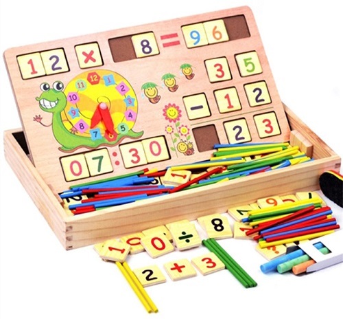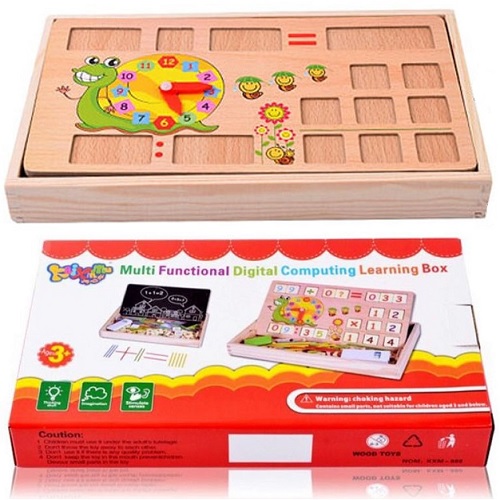 - Mặt sau của hộp được tích hợp bảng cửa chương, giúp bé học cách tính toán nhẫm được nhanh