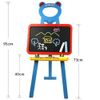 - Bộ gồm 1 giá đỡ chắc chắn, 1 khay đựng, 1 bảng 2 mặt, 2 bộ chữ số nam châm, 2 viên phấn, 1 chiếc bút lông, 1 đồ chùi bảng giúp bé có thể vẽ và tập viết chữ.
