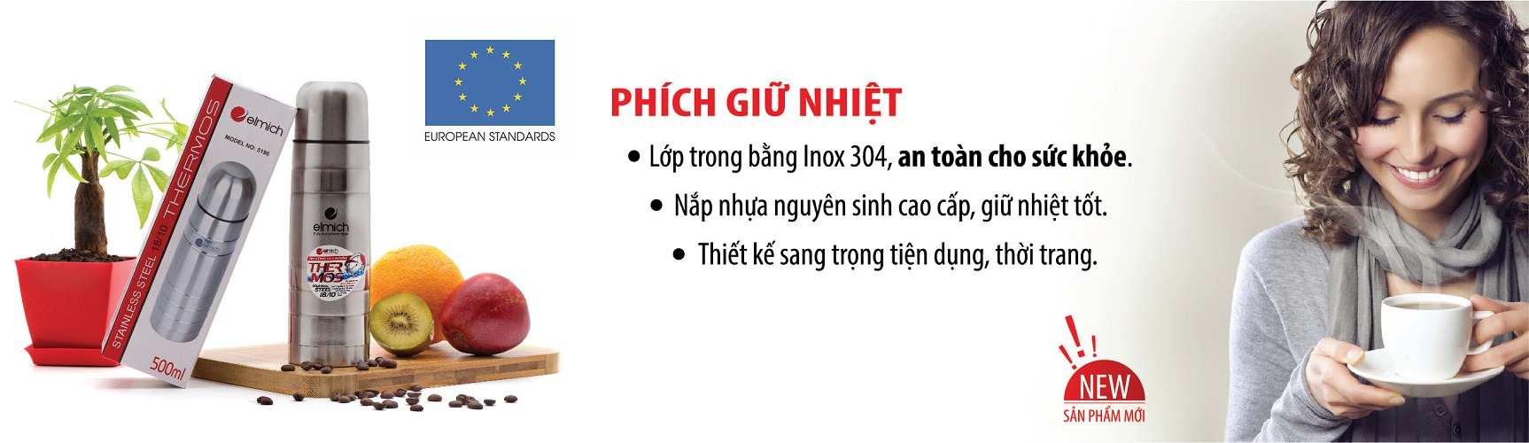 BÌNH GIỮ NHIỆT NÓNG LẠNH INOX 304 ELMICH EL-5196 500ML / EL-5197 750ML / EL-5198 1000ML