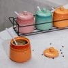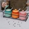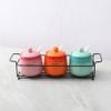Bộ 3 hũ gốm sứ đựng gia vị kèm giá đựng & muỗng Rainbow Kaiyo KCC-5141 300ml