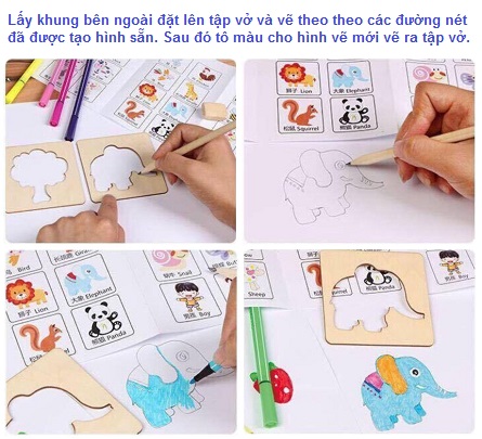 - Các khuôn tập vẽ và tô màu được làm từ chất liệu gỗ an toàn, không ảnh hưởng đến sức khỏe của gia đình bạn.