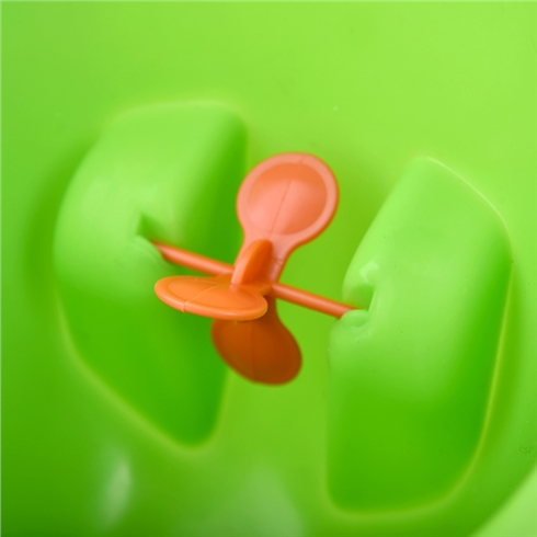 Bồn tiểu có gắn chong chóng ở chính giữa, khi bé tè trúng chong chóng sẽ quay tít vừa giảm lực của nước để tránh bắn nước ra ngoài, đồng thời tạo sự thích thú cho bé.