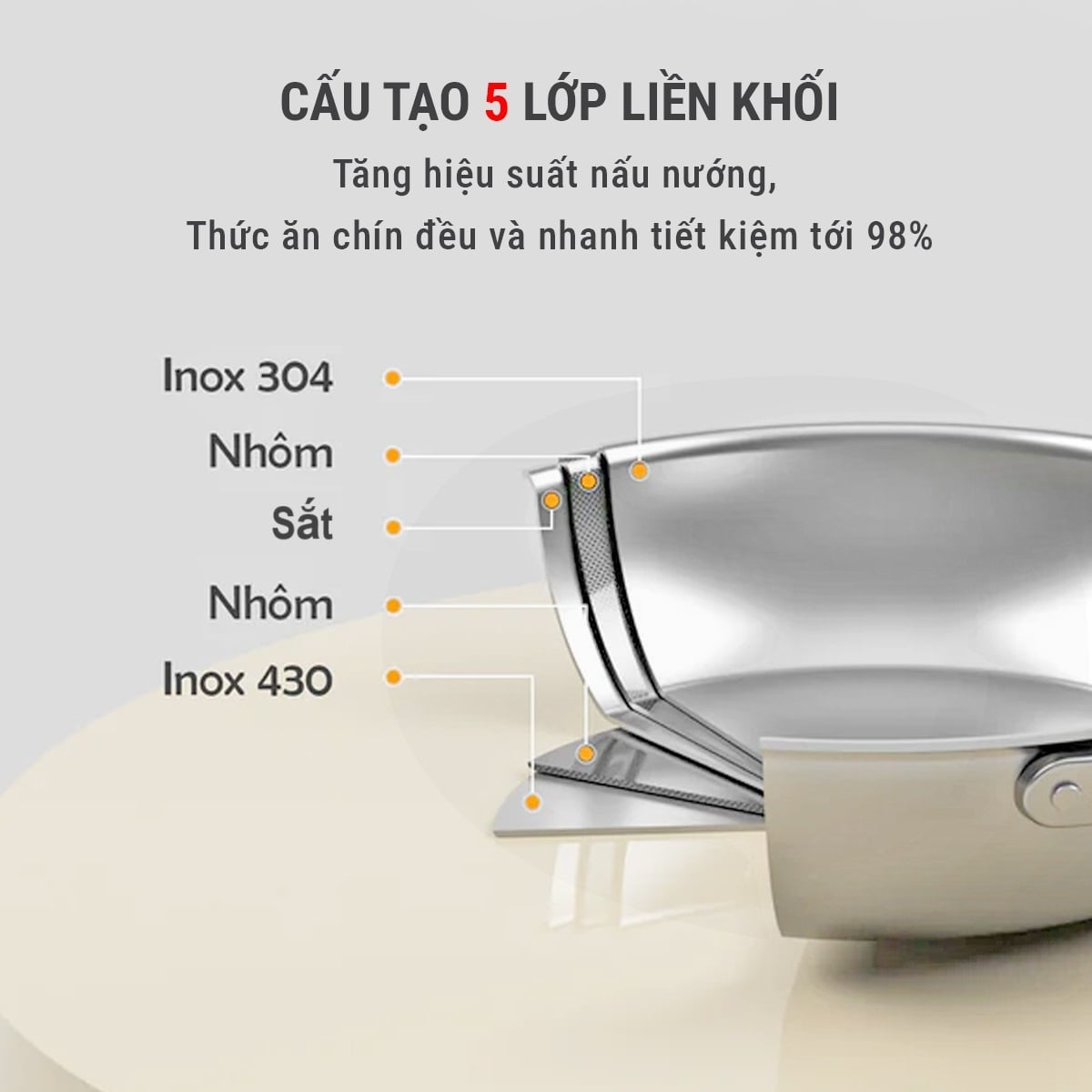 Cấu tạo đáy chảo 5 lớp liền khối