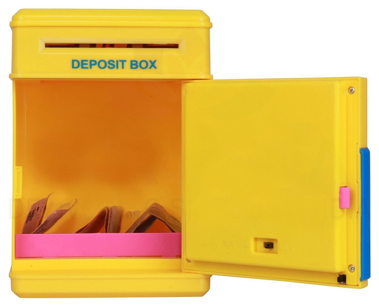 - Có hệ thống khóa an toàn bằng mật mã, khi bé nhấn đúng mật mã thì két sắt mới mỡ ra, chức năng này sẽ rèn luyện trí nhớ cho bé cũng như giúp bé hiểu tác dụng của mật khẩu trong việc tạo nên sự an toàn của hệ thống khóa.