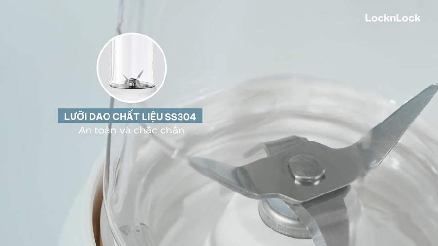 - Máy xay sinh tố mini LocknLock EJM433WHT có lưỡi dao xay sắc bén sử dụng chất liệu Inox 304, cho độ bền cao, khả năng xay nát nhanh trái cây, đồng thời không thôi nhiễm vào thực phẩm, đảm bảo an toàn vệ sinh thực phẩm.