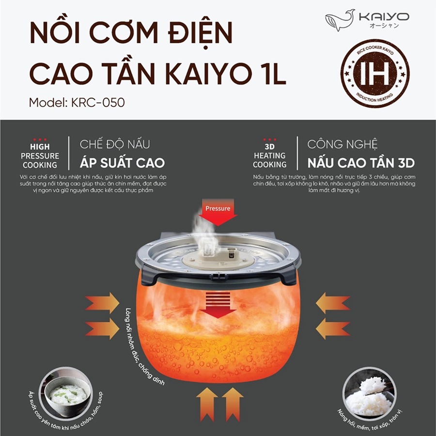 Nồi cơm điện cao tần Kaiyo KRC-050 - Dung tích 1L - Công suất 700W