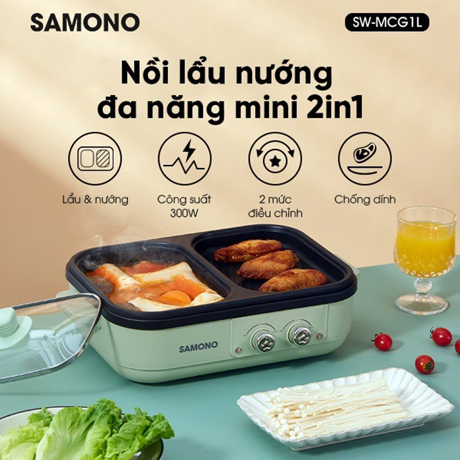 Nồi lẩu nướng điện đa năng mini 2in1 SAMONO SW-MCG1L
