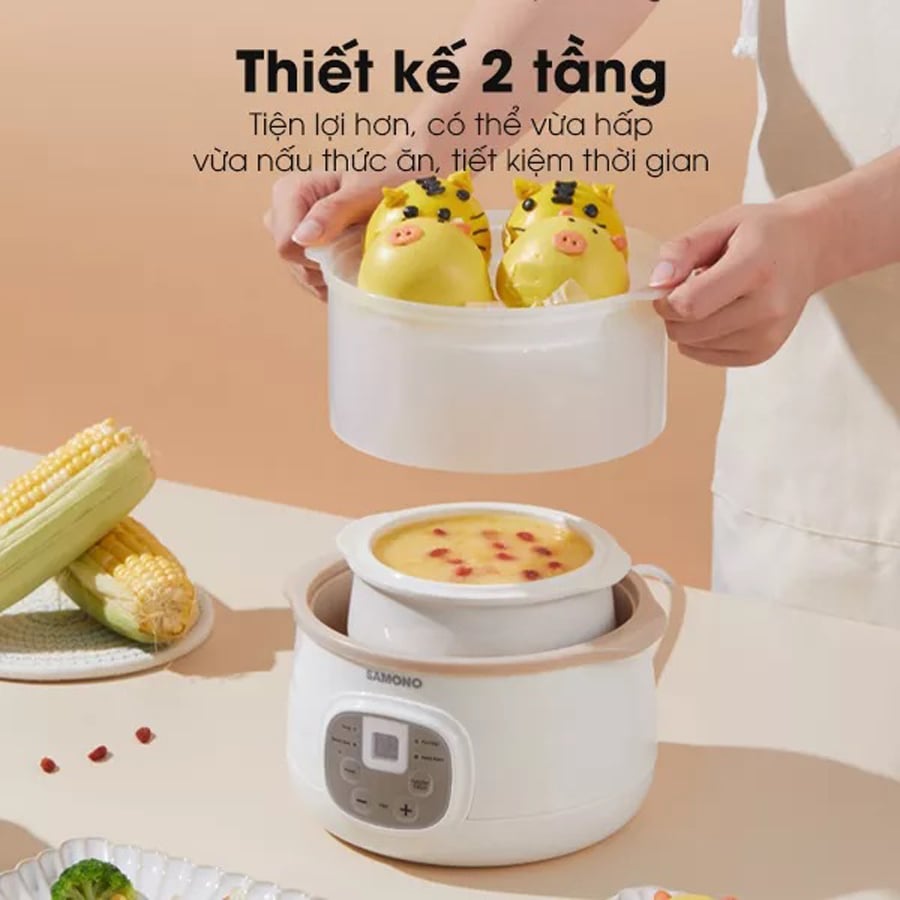 Sản phẩm là sự kết hợp giữa công nghệ nấu truyền thống và công nghệ thiết bị gia dụng hiện đại. Nồi nấu chậm đa năng 4in1 SAMONO SW-SC08 0.8L có thiết kế thời trang, tinh tế và quan trọng là đảm bảo các tiêu chí về độ an toàn cho đối tượng trẻ nhỏ.