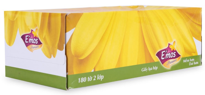 E'mos là thương hiệu thuộc Công ty TNHH một thành viên Vina Paper của Việt Nam, được biết với các dòng sản phẩm khăn giấy, khăn cuộn,... với mẫu mã đẹp sản phẩm an toàn và chất lượng. E'mos được mọi người ưa chuộng tin tưởng và sử dụng rộng rãi.